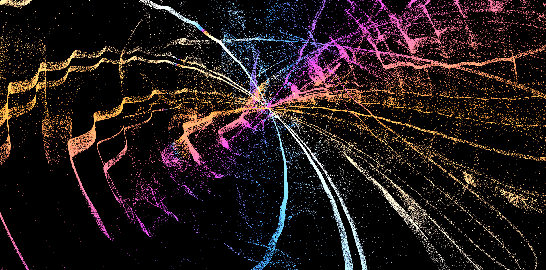 Particle simulation using vertex transformations in GLSL where you can click and drag around to make particles follow your cursor.